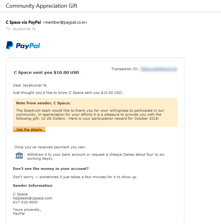 $10 PayPal cash from CSpace for participation November 23, 2016November 23, 2016 Jayakumar N Previous Next $10 PayPal cash from CSpace